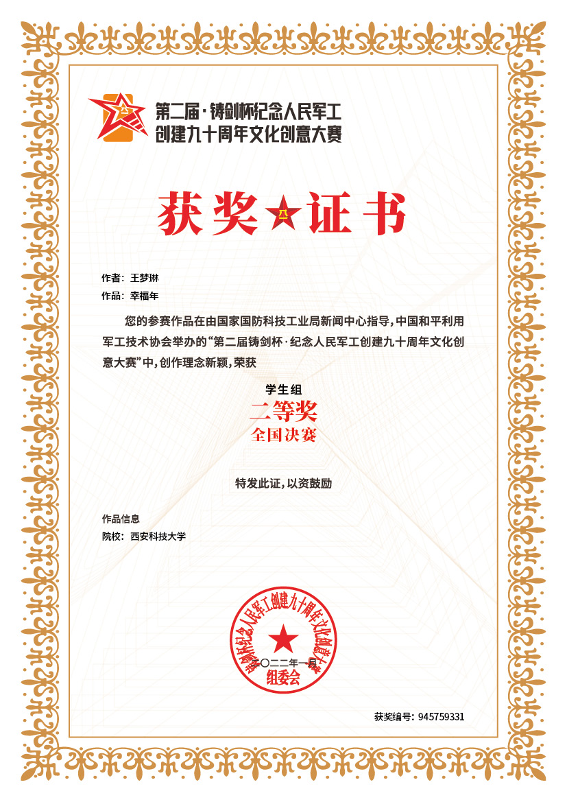 近日,由国家国防科技工业局新闻宣传中心、中国和平利用军工技术协会主办,《国防工业科技》杂志、《中国军转民》杂志承办,中国军转民国防教育普及办公室、大连平面协会等有关单位和大连理工大学建筑与艺术学院、大连工业大学艺术设计学院等高校协办的第二届“铸剑杯”纪念人民军工创建九十周年文化创意大赛落下帷幕。此次赛事参赛人数共6770人,收到来自全国各院校的16772件作品。