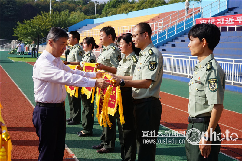 9月14日上午,2023级本科生军训总结表彰大会举行,参训学生正式接受检阅,结束了为期半个月的军事训练。校党委书记蒋林,校党委副书记、军训旅政委陈春林,副校长、军训旅副旅长张传伟,副校长、军训旅旅长曹明,军训旅主要部门负责人,各营参训干部,2023级全体参训学生参加大会。