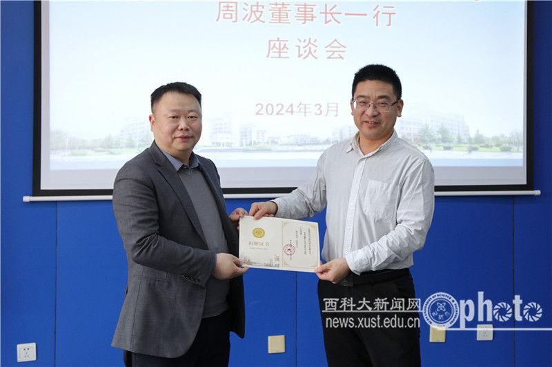 张传伟对深圳海清智元科技股份有限公司周波校友一行的到来表示欢迎,对周波校友长期以来对学校的关心和支持表示感谢,对校友传递出的蓬勃向上的力量感同身受。希望校友企业和学校一起协同推进新质生产力科创园建设,用科创的火花点燃学生和校友积极向上的热情,促进学校人才培养目标从应用型向学术型转变,全面提升人才培养质量,共同做好校友联系网络、百千万工程、校友企业科创园、校友助学力量等“四个全覆盖”,建设校友智库,汇聚校友力量,积极开展合作交流,推动学校校友企业新质生产力科创园建设落地生效。