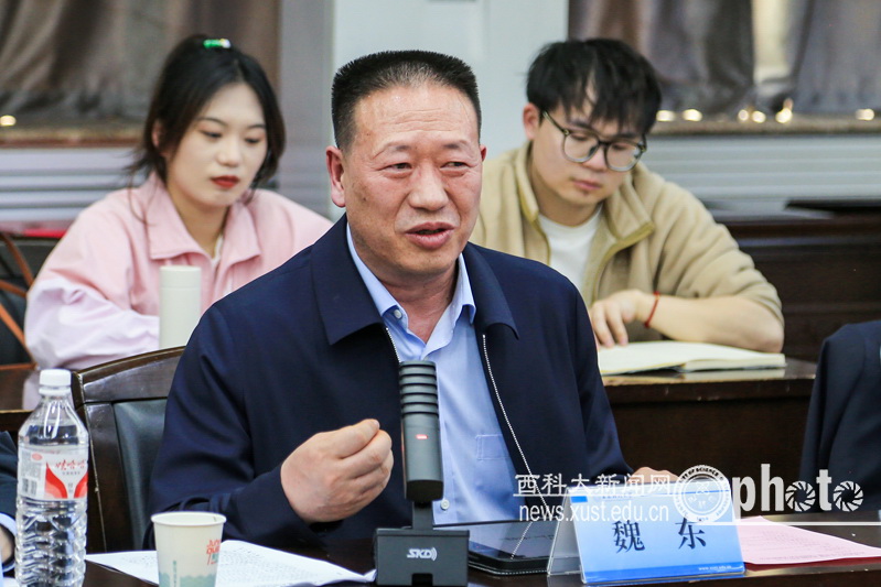 魏东介绍了陕西延长石油矿业有限责任公司的基本情况,他表示建设智能化矿井背景下,煤矿企业急需一批理论功底扎实、专业实践能力强的高层次工程技术人员,延长石油矿业公司愿与西安科技大学加强产学研合作,以科研合作为载体,共同组建高层次科技攻关团队,成果共享,在解决企业技术难题的同时培养更多卓越工程师人才。他希望即将毕业的博硕士研究生能够秉持家国情怀,立足长远,多钻研、多实践,实现个人发展与国家煤炭科技进步双赢,并对与会研究生代表关心的课题研究、个人发展和就业问题进行了详细解答。