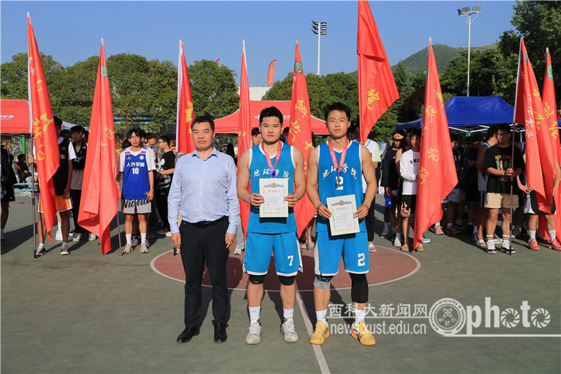决赛现场,双方都展现出了极高的竞技状态和团队协作精神。地环学院男篮凭借其坚实的防守和流畅的进攻,最终以51:33赢得了比赛的胜利,成功卫冕冠军。亚军和季军分别是测绘学院、能源学院,第四至八名依次为建工学院、机械学院、计算机学院、电控学院、理学院。邹俊杰获MVP、聂建翔获FMVP。